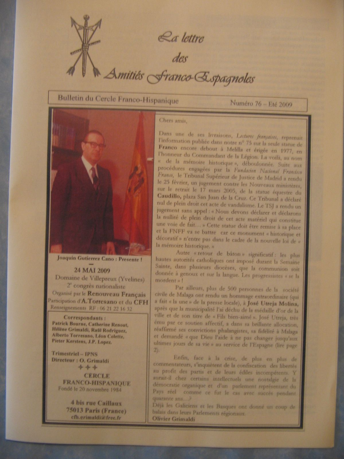Nous reproduisons ci-dessous des extraits de la Lettre des Amitiés franco-espagnole (n°76, été 2009),