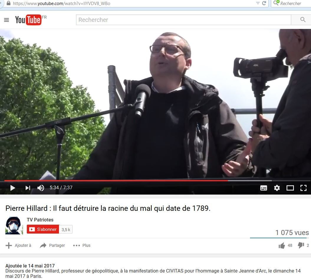 Le 14 mai 2017, Pierre Hilard exhorte les nationalistes et catholiques à ne plus associer les noms de Robert Brasillach et de Jeanne d'Arc : https://www.youtube.com/watch?v=llYVDV8_WBo (5'30) ou https://www.youtube.com/watch?v=n-klO0o-MsI