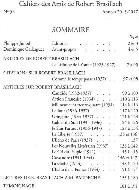 Cahiers des Amis de Robert Brasillach, n°53, 2015-2017 : 70 ans après / Inédits
