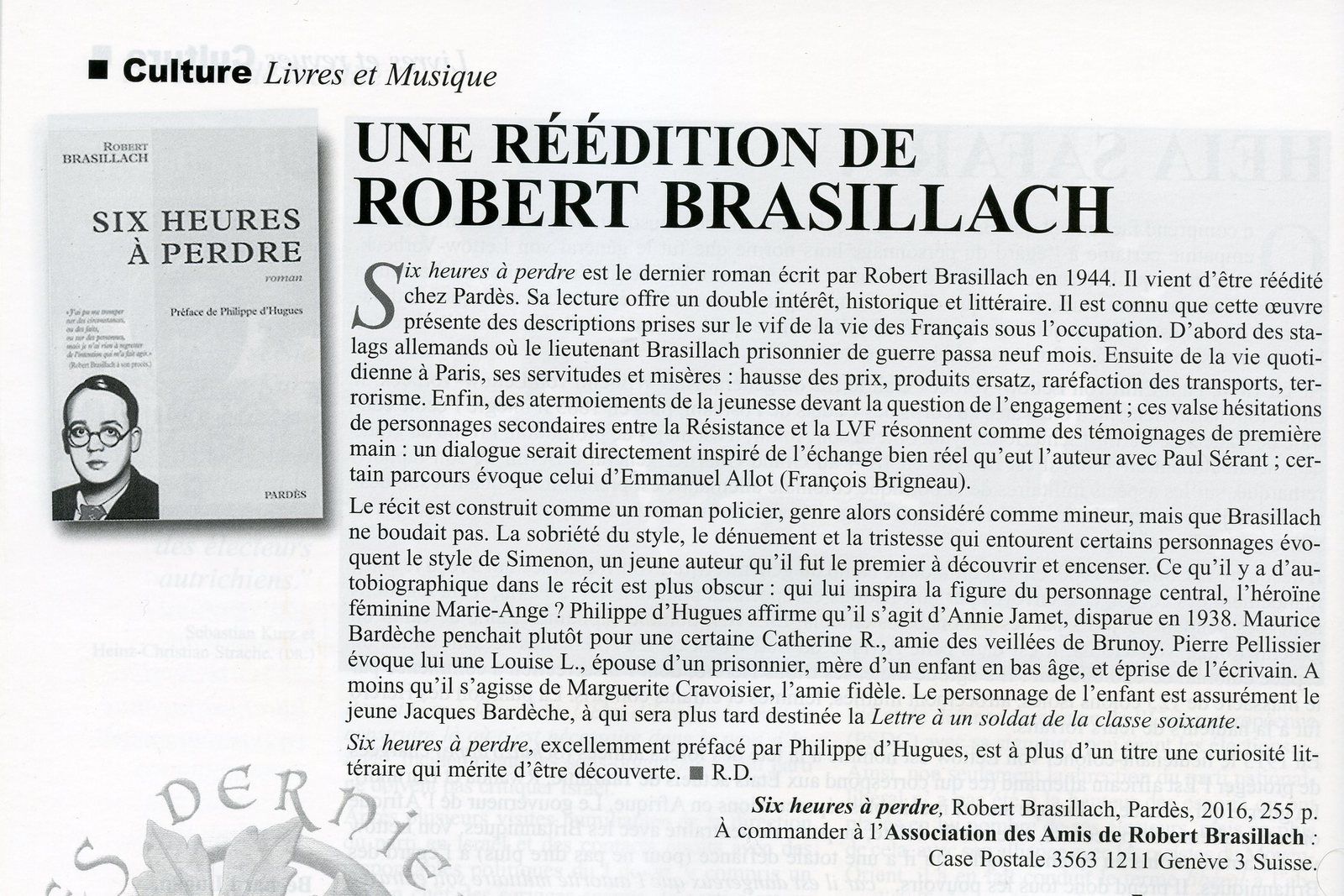 Compte rendu de la réédition de « Six heures à perdre » (« Terre et peuple »)