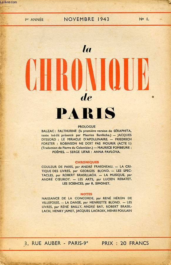 From November 1943 to July 1944, La Chronique de Paris, a review directed by Henry Jamet and whose main protagonist was Robert Brasillach, was published in the occupied zone. The main collaborators (Lucien Rebatet, André Fraigneau and Georges Blond) were all marked by their commitment to fascism before the war and their collaborationist stance from 1940 onwards. All are known for their having written novels of high literary standards, regularly (re)published from the 1930s to the 2010s. At a point when the wind seemed to have turned for the Nazis who were no longer certain of securing the final victory, the review purported to gather intellectual and spiritual forces around the permanence of the French language, genius and classical wit. To this end, the chroniclers wrote short essays, published previously unpublished material and commented on the publication of new books, thus sketching an ideologically correct cultural field in the name of a European culture in which Germany occupied a prominent place and on the basis of a radical denunciation of democratic and republican ideas, of the communists and vichyists, and above all of Jewish thought. The present study questions the enigma of the ideological mechanisms that took possession brilliant and cultivated spirits, of sensitive and sensible analysts to enrol them in the service of obscurantist and racist totalitarianism.