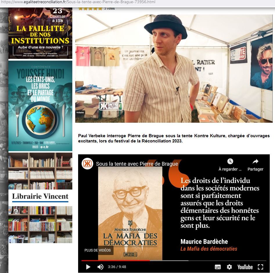 Ouvrage évoqué par Jean-Michel Vernochet à la fin de son "Libre journal" (n°88) du 2 août 2023, par Pierre de Brague ("sous la tente" de Kontre Kulture au festival de la Réconciliation, août 2023) et par Félix Niesche (Kontre Kulture, 3 novembre 2023).