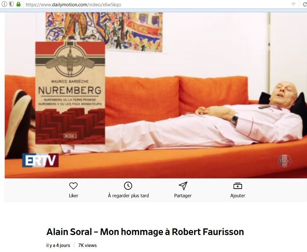 Dans son hommage à Robert Faurisson du 25 octobre 2018, Alain Soral évoque Maurice Bardèche en ces termes :