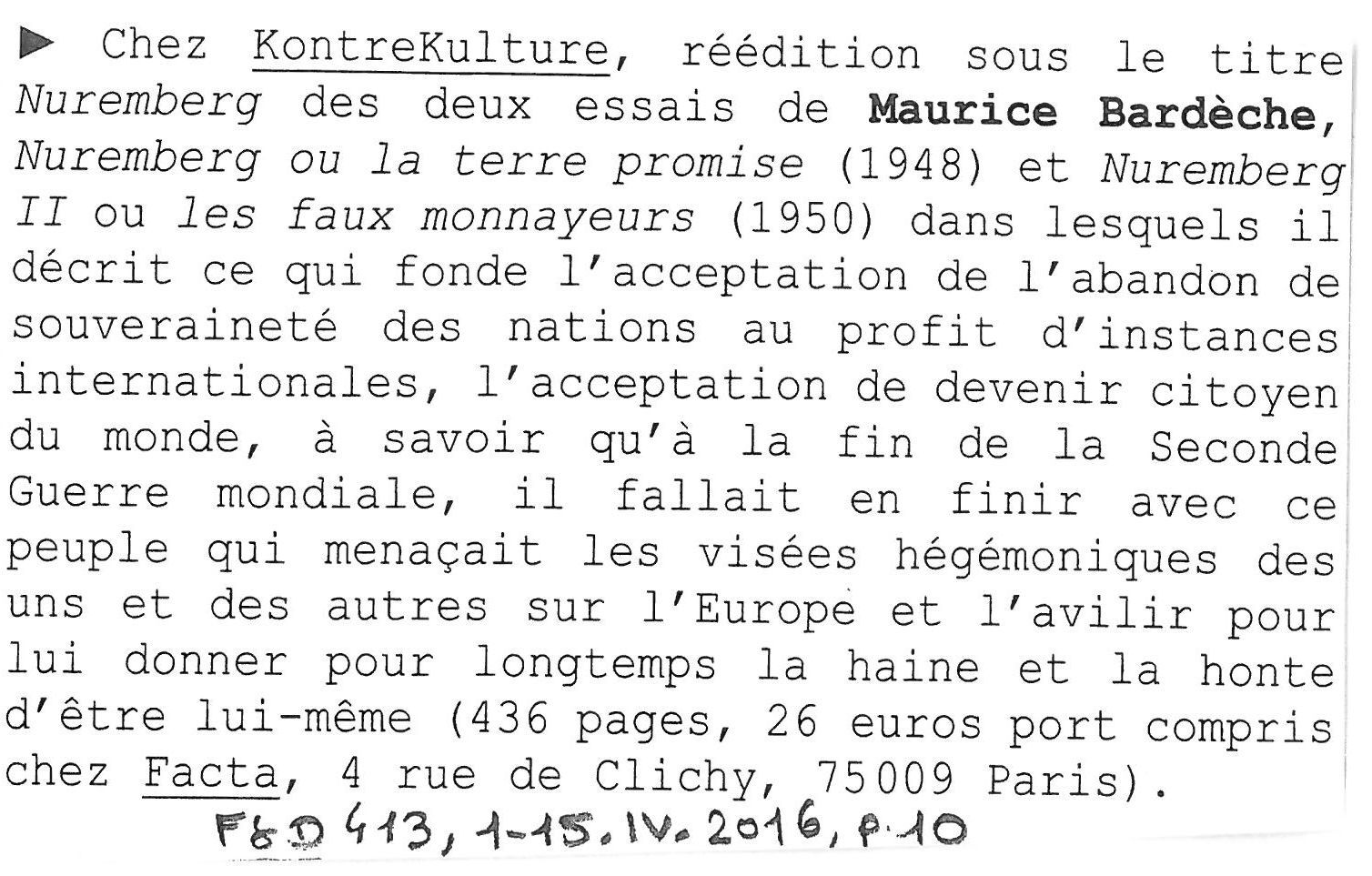 « Nuremberg » chez Kontre-Kulture
