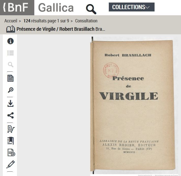 Une version pdf de Présence de Virgile a récemment été mise en ligne sur Gallica, la bibliothèque numérique de la Bibliothèque nationale de France :