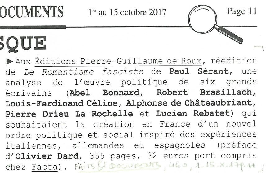 Réédition du « Romantisme fascisme »