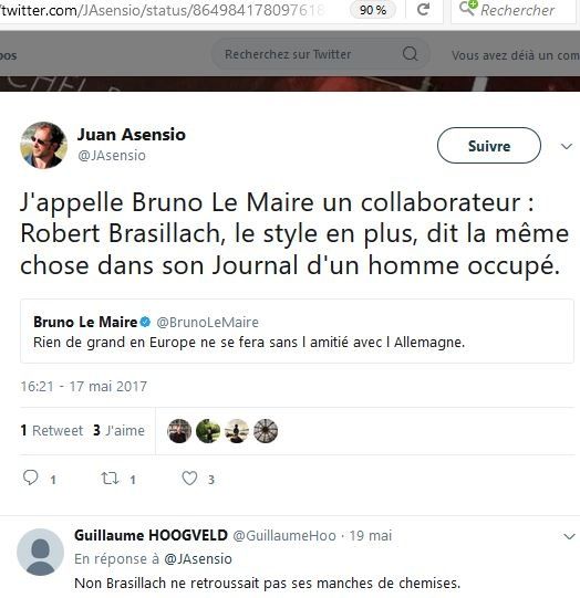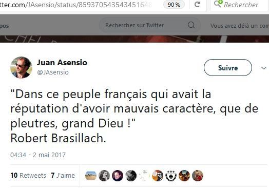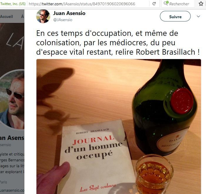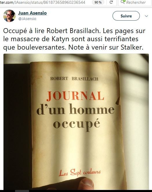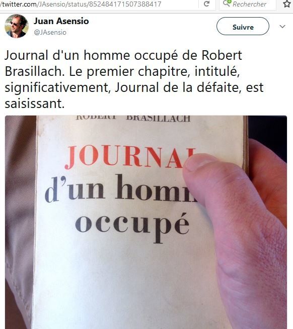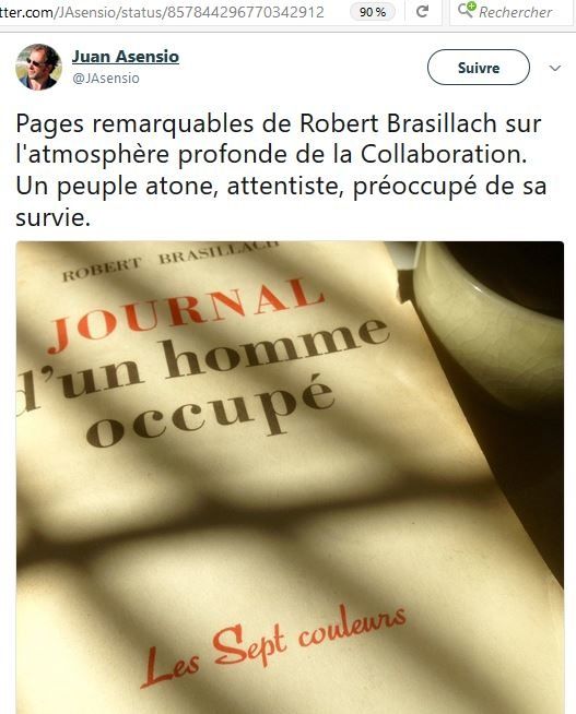 A l’occasion de cette lecture, Juan Asensio a publié plusieurs Twitts relatifs à Brasillach :