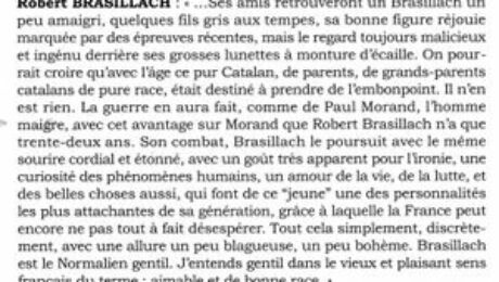 Le cas Brasillach est évoqué par Gilles Heuré dans le cadre d’un dossier sur « La culture sous l’Occupation » de l’hebdomadaire Télérama (n°3150, 26 mai 2010, p.46/48).