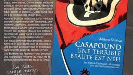 A déjà été signalé l’attrait exercé par Robert Brasillach sur le mouvement italien de la Casapound, ici et là. Il en est question dans la traduction d’un ouvrage italien qui vient de sortir, aux éditions du Rubicon, Casapound : Une terrible beauté est né ! Les mots de Casapound : 40 concepts pour une révolution.